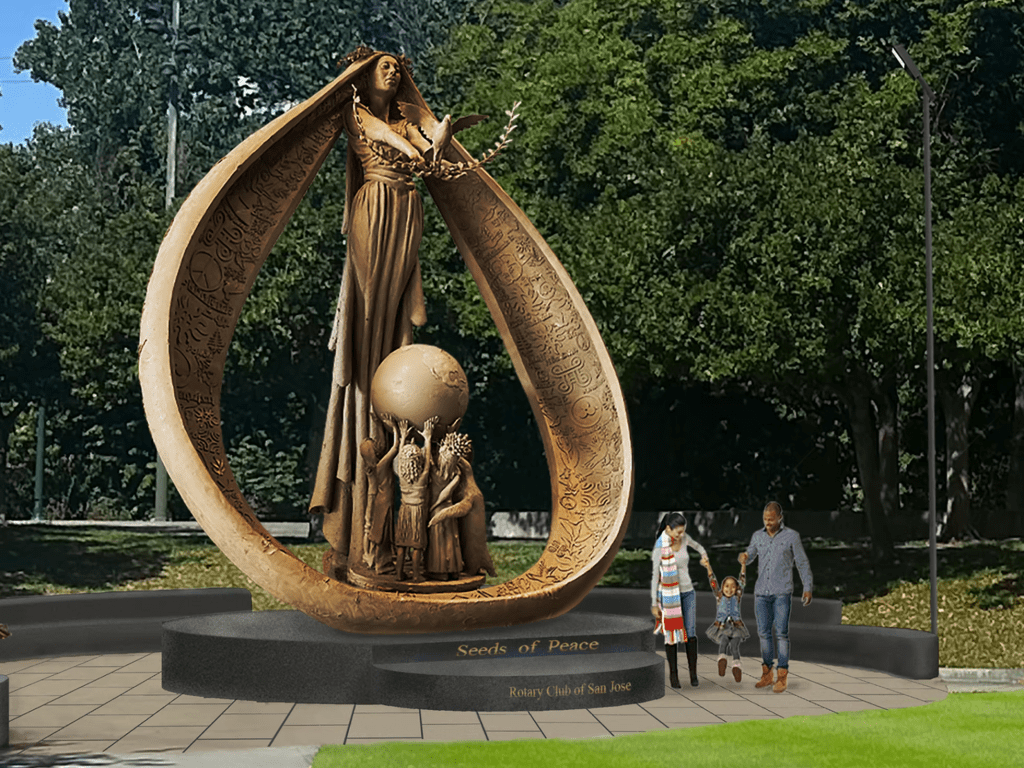 The Peace Monument is to be titled “Seeds of Peace”. We asked Mulcahy how she envisioned planting this seed in San Jose might create a ripple effect in building peace in our area and across the globe.
