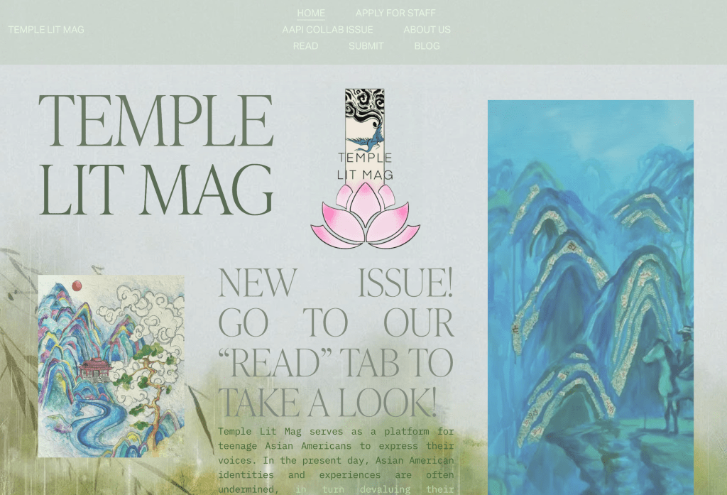 Many of the experiences I faced made me struggle with my mental health because as a little girl, I didn’t realize that I wasn’t being punished for being a bad kid. I was being treated unfairly because of my ethnicity. Hearing stories from my friends made me realize that there is so much stereotyping and hardships Asian Americans go through, but they don’t know who to tell. I created Temple Lit Mag so Asian Americans know that they have a safe space to show their writing to, as well as showcasing their works to the world to amplify their voices.